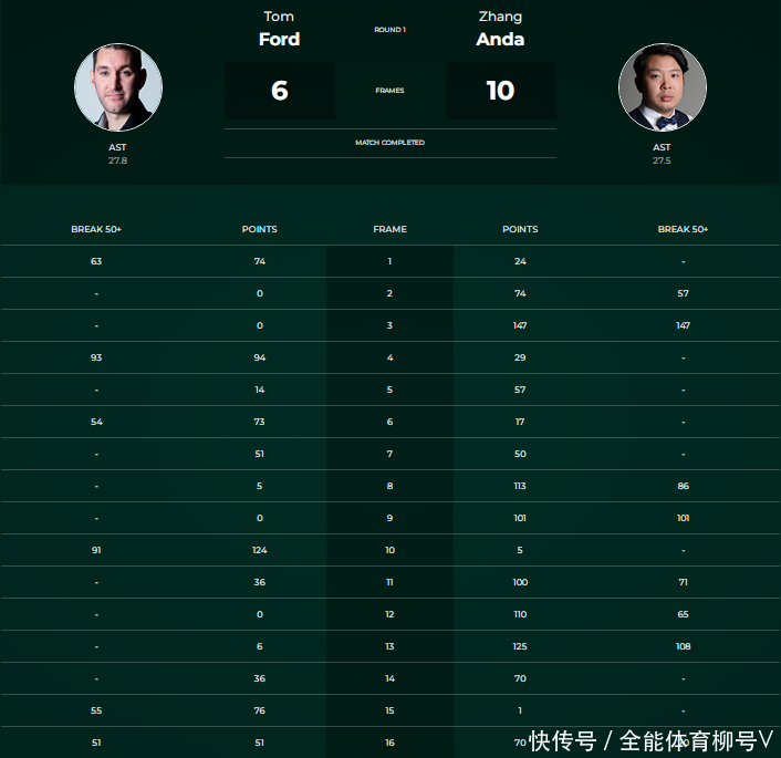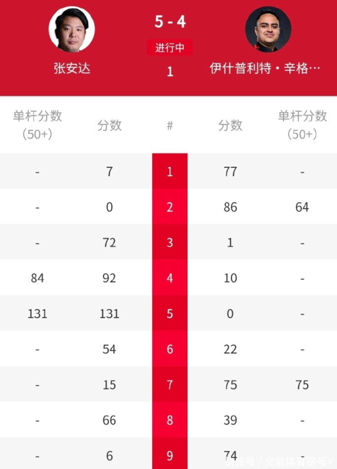 而在这场际遇战中,主场作战的张安达昭着慢热,敌手查达则是插足情景较快,很快就赢得2-0的特出上风。接下来的比赛中,张安达驱动插足情景,他轰出一杆破百和一杆50+,连扳四局之后以4-2反超比分。第八局搁置后,张安达更所以5-3赢得两个赛点,查达随后追成4-5。